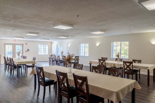 A spacious resident-centered area, the community room accommodates large and small groups. Numerous events and activities are hosted here.